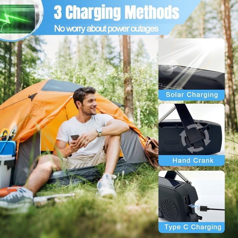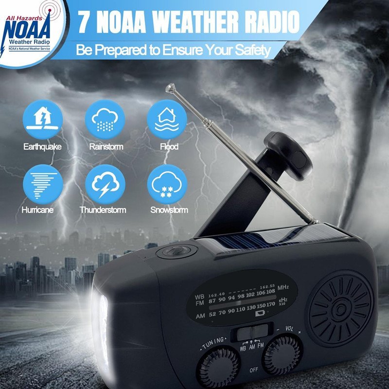 【Emergency Weather Broadcast】The hand crank emergency radio integrates AM/FM frequency bands with NOAA weather warning broadcasts, allowing you and your family to receive early warnings and prepare for disasters such as hurricanes, tropical storms, tornadoes, etc., and smoothly navigate through every season of frequent disasters.