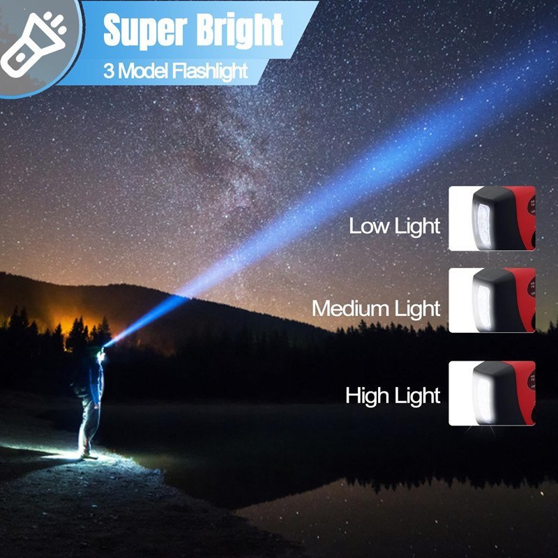 【Multiple Charging Methods】The emergency solar crank radio has three charging methods: manual crank, solar charging, and micro USB cable. Can charge USB port devices such as smartphones. Keep you connected and powered. Hand cranked self charging power-off, 2000mAh rechargeable battery can provide up to 10 hours of light or 4-6 hours of broadcasting.