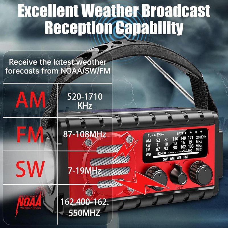 [emergency preparedness] NOAA Weather Radio with 360° Signal Reception--The emergency crank radio features a 20.5" telescopic antenna for precise NOAA/AM/FM/SW band reception, delivering critical alerts for hurricanes, tornadoes, blizzards, and wildfires. Built-in noise reduction chip ensures clear broadcasts during power outages. Ideal for remote camping or mountain emergencies, keeping you connected when networks fail.