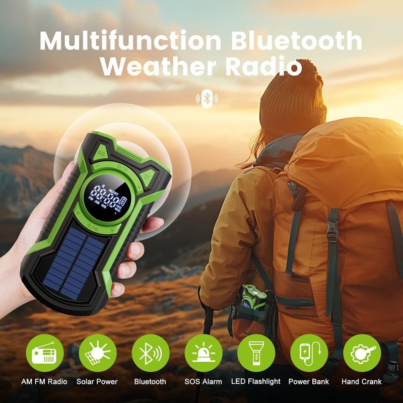 【Bluetooth Radio Speaker】This hand crank radios is also a waterproof solar Bluetooth speaker.You can enjoy your own music from your cell phone whether for outdoor, camping or home use. Bluetooth V5.3 ensures smoothly and easy connection.